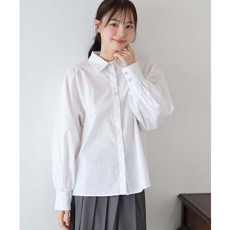 襟付きのきっちりした印象のシャツに、ふんわりとしたボリュームスリーブと