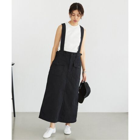 サスペンダー付きのミリタリースカート。