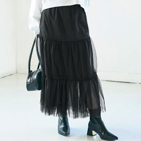 軽やかでフェミニンな印象のチュールスカート。