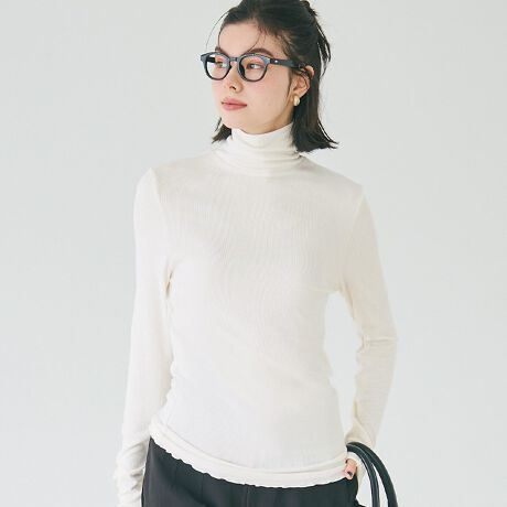 肌なじみの良いテレコ素材で着回し力抜群のタートルネック