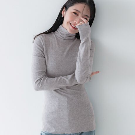 肌なじみの良いテレコ素材で着回し力抜群のタートルネック