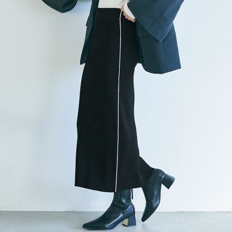 縦長ラインがスタイルを美しく見せるリブニットスカート
