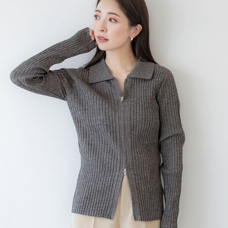 メランジジップアップニットトップス 全2色