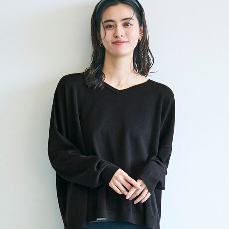 ドルマンスリーブで華奢見えが叶うVネックニット