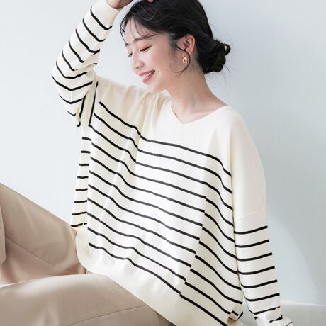 春先に着る薄手のニットを探していました。薄さは想像していた通りの薄手で、生地感は『ニット』と言われて想像するより、もっとサラッと軽い感じ。色違いのボーダーも購入しましたが、ボーダーの方が若干厚さを感じたのですが…、気のせいかもしれません。