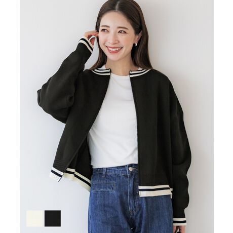 ライン配色がトレンドのニットジャケット
