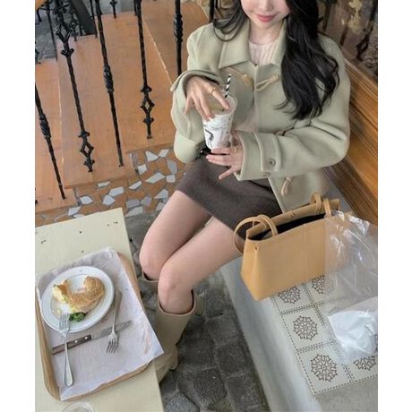 フェミニンから少しカジュアルなスタイルまで幅広く活躍するダッフルショートコート。