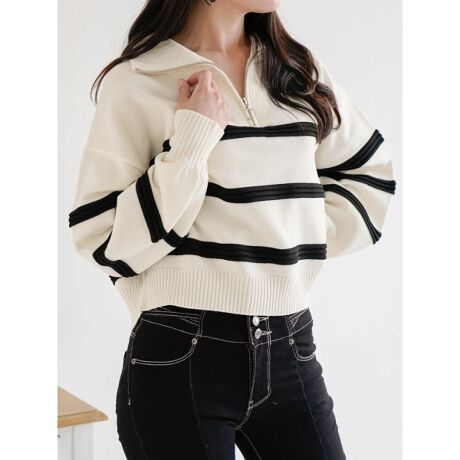 デコボコとした立体感のあるボーダーデザインがアクセントになったニットトップス