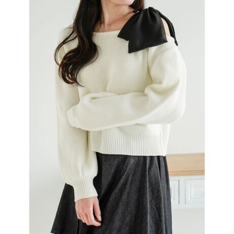 肩リボンがスイート?トレンド感溢れるオフショルプルオーバー。