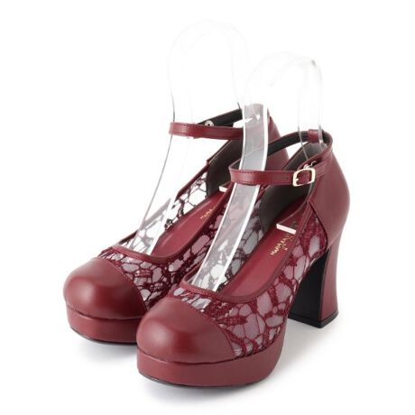 厚底チュールレースチャンキーヒールパンプス