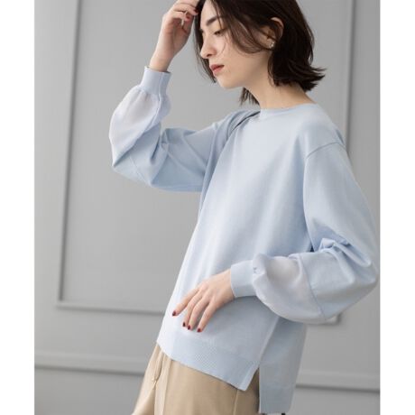 袖口のジョーゼット切り替えがさりげない、軽やかなデザインニット。