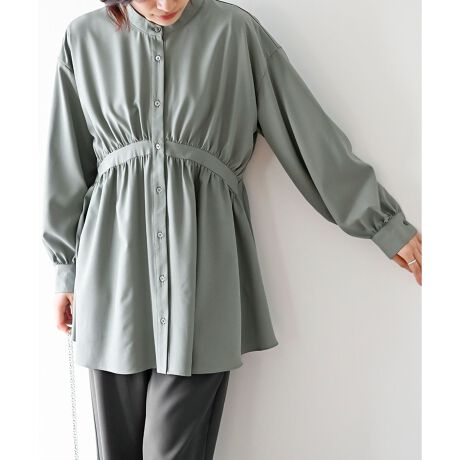クシュっとギャザーが女性らしいロングブラウス