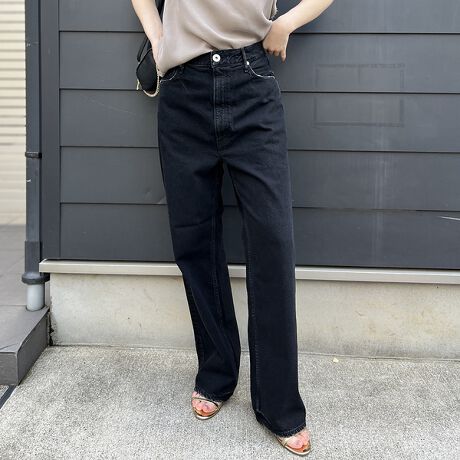 リラックスフィットのワイドストレートデニム股上は深めで脚長効果も抜群。