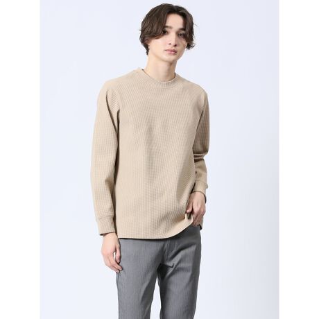 シンプル過ぎない存在感のあるクルーネックの長袖Tシャツです。ワッフル素材で着映えするルックスに仕上げています。一枚で着るのはもちろん、ジャケットやシャツ、ベストのインナーとしても便利なアイテムです。