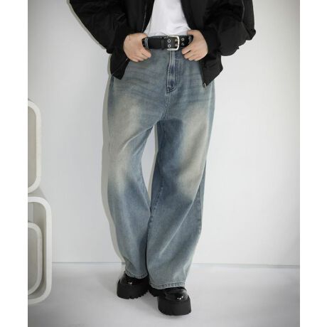 ヴィンテージライクな仕上がりと、ワイドシルエットが目を引くデニムパンツ。