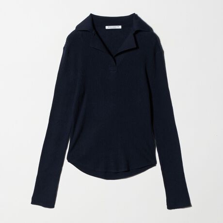 テーラードカラーの様な襟デザインがクラシックな印象のリブニット。