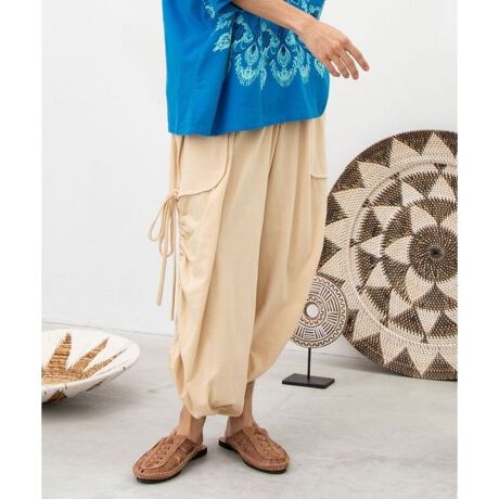パンツ丈 98cm ウエスト 78〜110cm(ゴム・ヒモ) 股下 64cm 股上 33cm もも周り 100cm 裾周り 30〜76cm(ゴム)