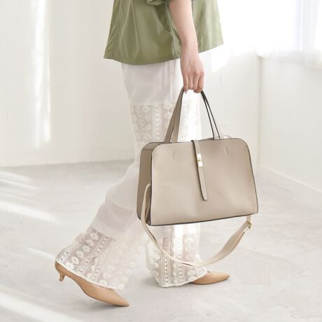 quaranciel: フロントデザイン ボストン トートバッグ(A4対応)