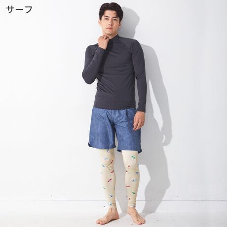 ラッシュトップスとコーデ、サーフパンツと重ね着しても◎。肌をガードして足元までUV対策。