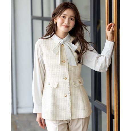 オケージョンからカジュアルまで様々なシーンで着回せる上品ツイードのペプラムジレ