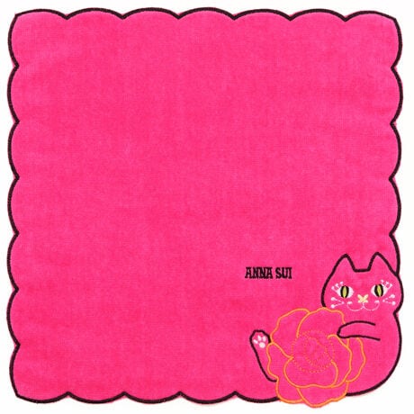 薔薇の花にじゃれているネコがキュートなタオルハンカチ。なめらかなシャーリング生地を使っており、触り心地も抜群です。