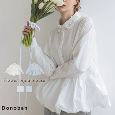 【Donoban】フラワービジューブラウス