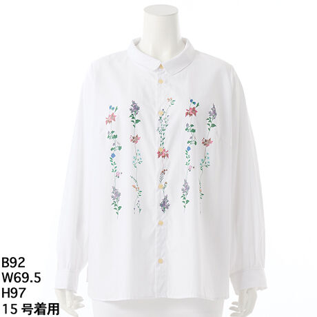 ブルーのシャンブレーが好きなので、とても気に入っています。襟の寝具合も申し分ありません。裾の前と後ろの境目にさり気なく同色のレース刺繍が施されていたり細かい所まで凝ったデザインになっています。欲を言えば綿100%なら完璧でした。