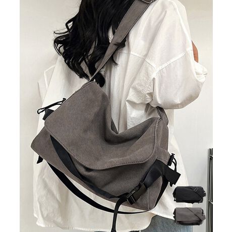 トレンドのキャンバス生地を使用したヴィンテージライクなデザインのショルダーバッグ