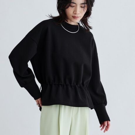 裾のドロストデザインが程よいアクセントとなり、リラックス感を漂わせながらもスタイリッシュな印象を与えます。