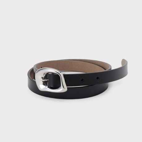 トレンドの変形メタルバックルがポイントの細幅ベルト。