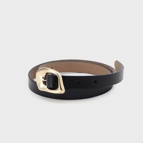 トレンドの変形メタルバックルがポイントの細幅ベルト。