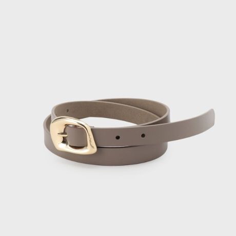 トレンドの変形メタルバックルがポイントの細幅ベルト。
