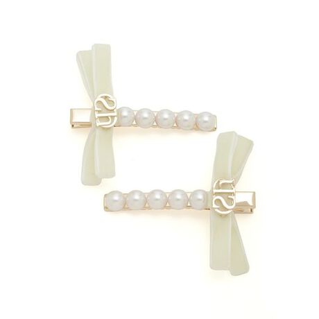 パールとトレンドのリボンをデコレーションした、キャッチーで華やかなヘアピンの2本セットです。