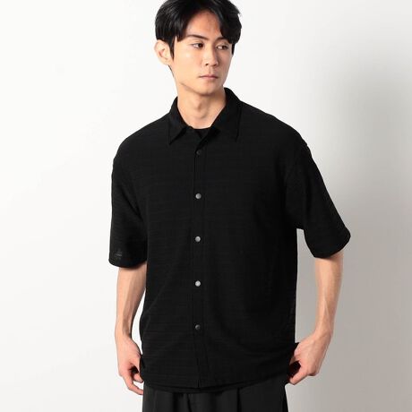 表面感に特徴のあるジャガードメッシュを使用した軽さ、通気性があるメッシュシャツ。