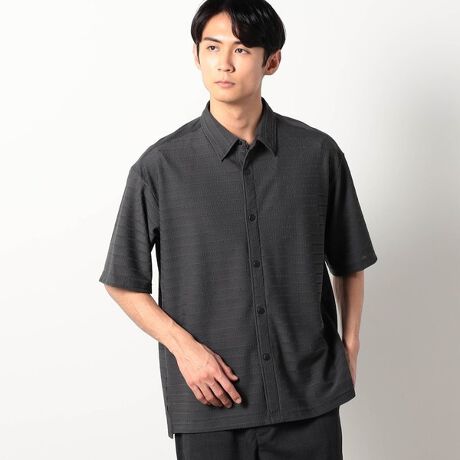 表面感に特徴のあるジャガードメッシュを使用した軽さ、通気性があるメッシュシャツ。