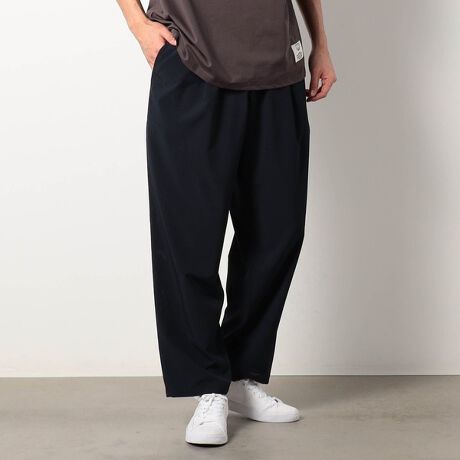 通気性の良いメッシュ素材をワイドテーパードシルエットで作成したパンツ。
