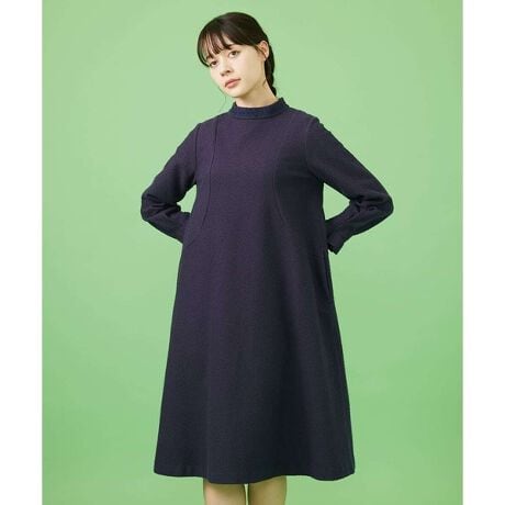 特別な日のお出かけにぴったりなワンピース。締め付け感の少ないストレスフリーなシルエットながらも、ほどよい厚みのある素材も相まって美しいラインを実現します。より上品見えするハイネックデザインは露出が気になる方にもお召しいただきやすいデザインに。襟元にはお花のレースをあしらい、お顔周りに華やかさをプラス。袖口にタックで表現したフリルのようなデザインや、身頃のカーブを効かせた切り替えで女性らしさを後押しします。後ろファスナーで着脱できる仕様。