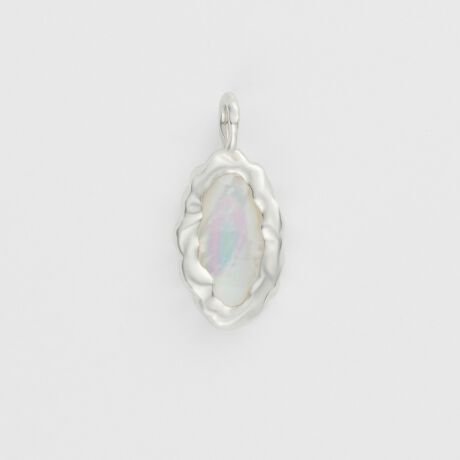 波のような有機的なフォルムにデザインされた、砂浜をイメージしたモダンなチャーム。動きのある地金面は、手仕事で形作ったこだわりのつくりです。美しく磨かれた白蝶貝の表面に浮かぶ自然が生んだ模様と、シルバーの柔らかなカーブとのコンビネーションがポイントです。辛めの印象になりがちなシルバーを、胸元に凛とした存在感を漂わせてくれるデザインです。※天然石や天然素材を使用しているものは、サイズ・色味・風合いの違いや、若干の傷、内包物の有無などに個体差があります。予めご了承ください。