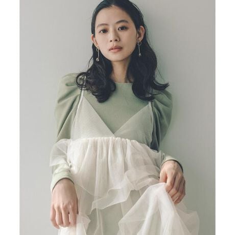 チュールキャミソールワンピース×カットソー素材のパワショルワンピースが2点セットになったレイヤードアイテム。それぞれ単品使いもしやすいアイテムで、カットソーワンピースは着心地が良く、透け感もないため一枚で着ていただけます。チュールキャミワンピースはバックスタイルがシャーリング仕様で、フィット感とリラックスした着心地が叶います。<素材>伸縮性のあるカットソー素材と、繊細なチュール素材を使用しています。<詳細>仕様・開閉なし裏地・なし透け感・インナーはなし、キャミワンピはあり / 光沢・なし / 伸縮性・インナーはあり、キャミワンピはややあり 生地の厚さ・インナーは普通、キャミワンピは薄手※モデルの着用画像の場合、光の当たり具合により、実際の色味と異なって見えることがございます。色味は、商品単体の画像をご参照ください。