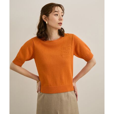 【洗える】クルーネックミドルゲージ5分袖ニット【オーガニックコットン】/セットイン対応