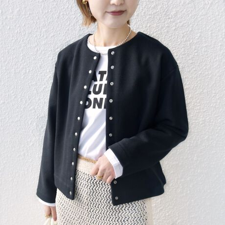 リブを省いた仕様で、裏毛素材ながら上品な仕上がりになっており、ジャケット風にも着用可能です。