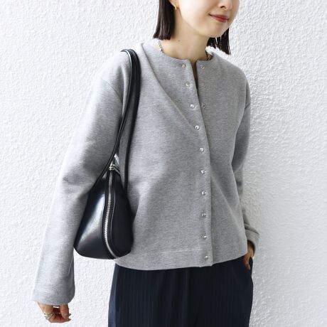 リブを省いた仕様で、裏毛素材ながら上品な仕上がりになっており、ジャケット風にも着用可能です。