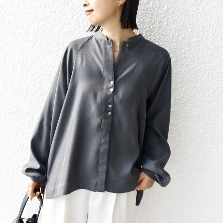 清涼感のあるキュプラ素材を使用したブラウスです。