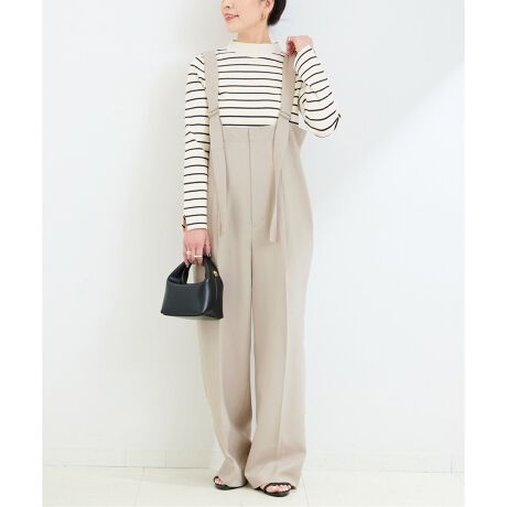 ハイウエストラインからタックを入れたワイドレッグのサロペット。