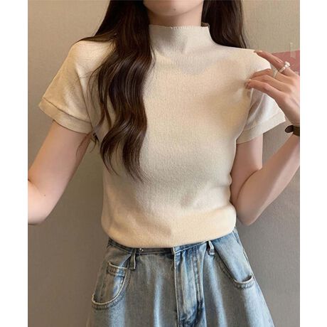 シンプルだけど一味違う、レーヨンブレンドのボトルネックTシャツ。