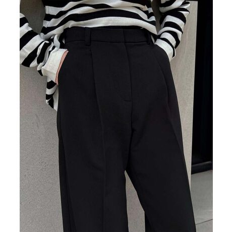 ゆったりとしたフォルムとハイウエストデザイン、フロントのタックが立体感を生み出し、スタイルアップ効果抜群。