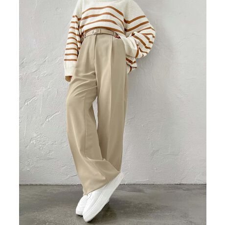 ゆったりとしたフォルムとハイウエストデザイン、フロントのタックが立体感を生み出し、スタイルアップ効果抜群。