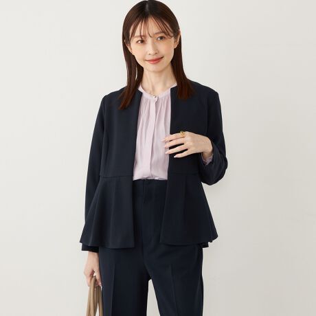 高めのウエスト位置から施したペプラムデザインが、スタイルアップ効果や、程よい女性らしさを演出してくれる1枚。