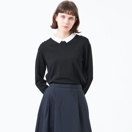 きちんと感のあるバイカラー襟がポイントのニットプルオーバー。