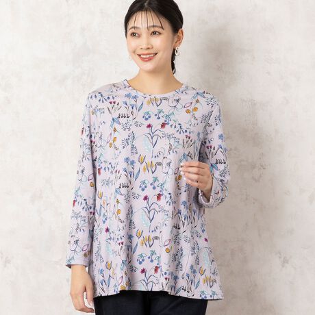 ◆優しい雰囲気のボタニカル柄が目を惹く綿カットソー◆